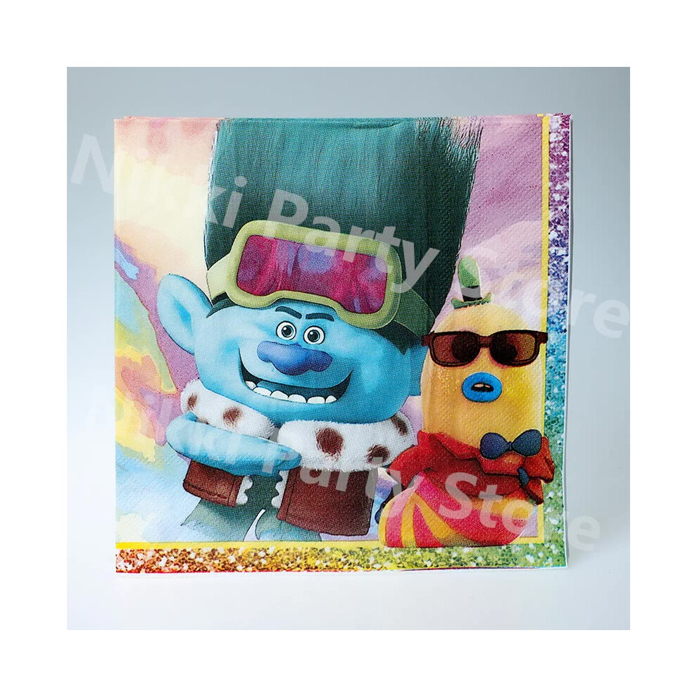 (Napkins-10pcs) New Trolls Birthday Party Decorations Troll Dolls Balloons Disposable Party Favors Tableware Tablecloth Plates Cups Baby Shower