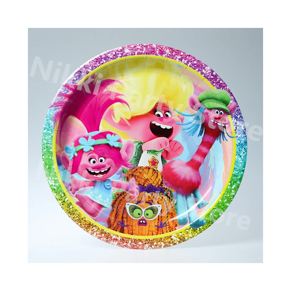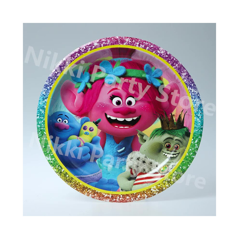 (Plate-10pcs-9inch) New Trolls Birthday Party Decorations Troll Dolls Balloons Disposable Party Favors Tableware Tablecloth Plates Cups Baby Shower