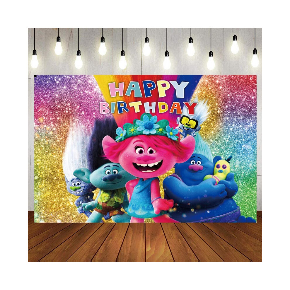 (Background-120x80cm) New Trolls Birthday Party Decorations Troll Dolls Balloons Disposable Party Favors Tableware Tablecloth Plates Cups Baby Shower