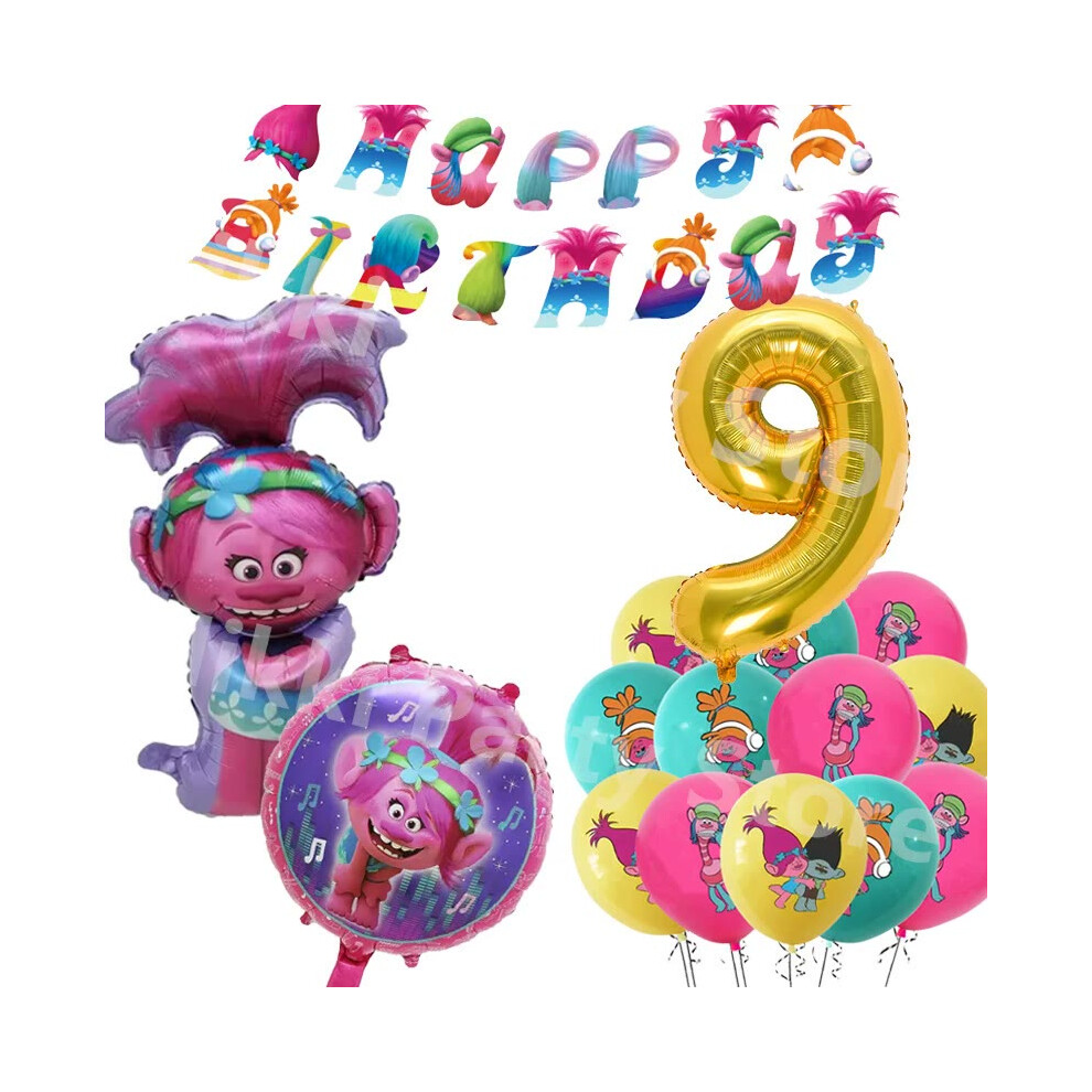 (Balloons-30pcs-9) New Trolls Birthday Party Decorations Troll Dolls Balloons Disposable Party Favors Tableware Tablecloth Plates Cups Baby Shower
