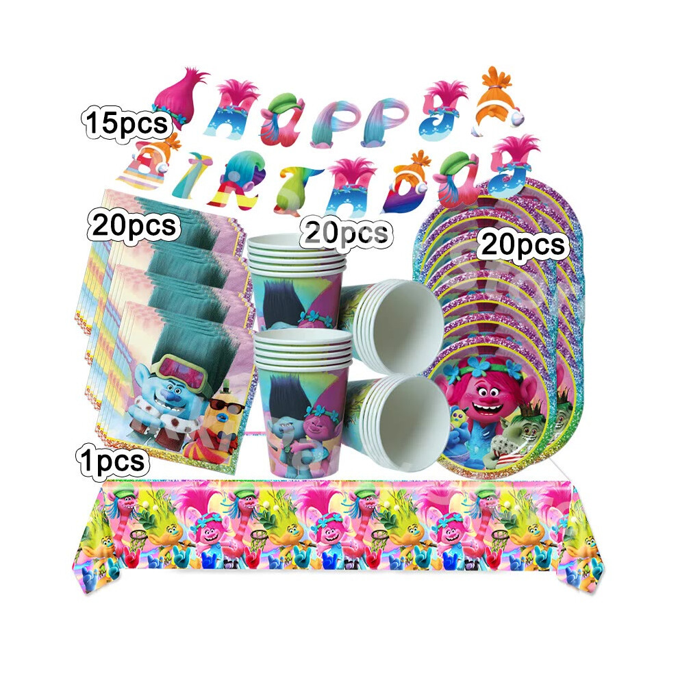 (Tablewares-76pcs) New Trolls Birthday Party Decorations Troll Dolls Balloons Disposable Party Favors Tableware Tablecloth Plates Cups Baby Shower