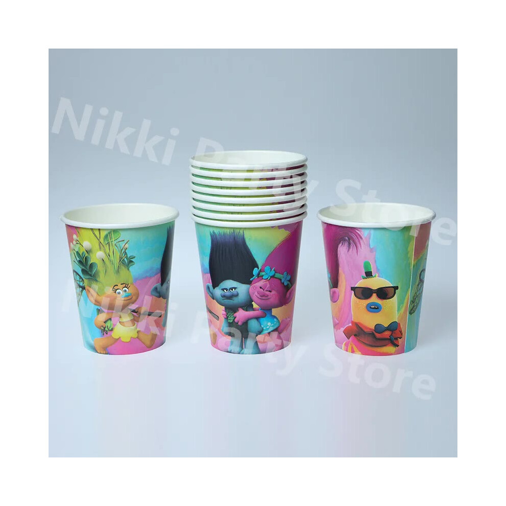 (Cup-10pcs-9oz) New Trolls Birthday Party Decorations Troll Dolls Balloons Disposable Party Favors Tableware Tablecloth Plates Cups Baby Shower