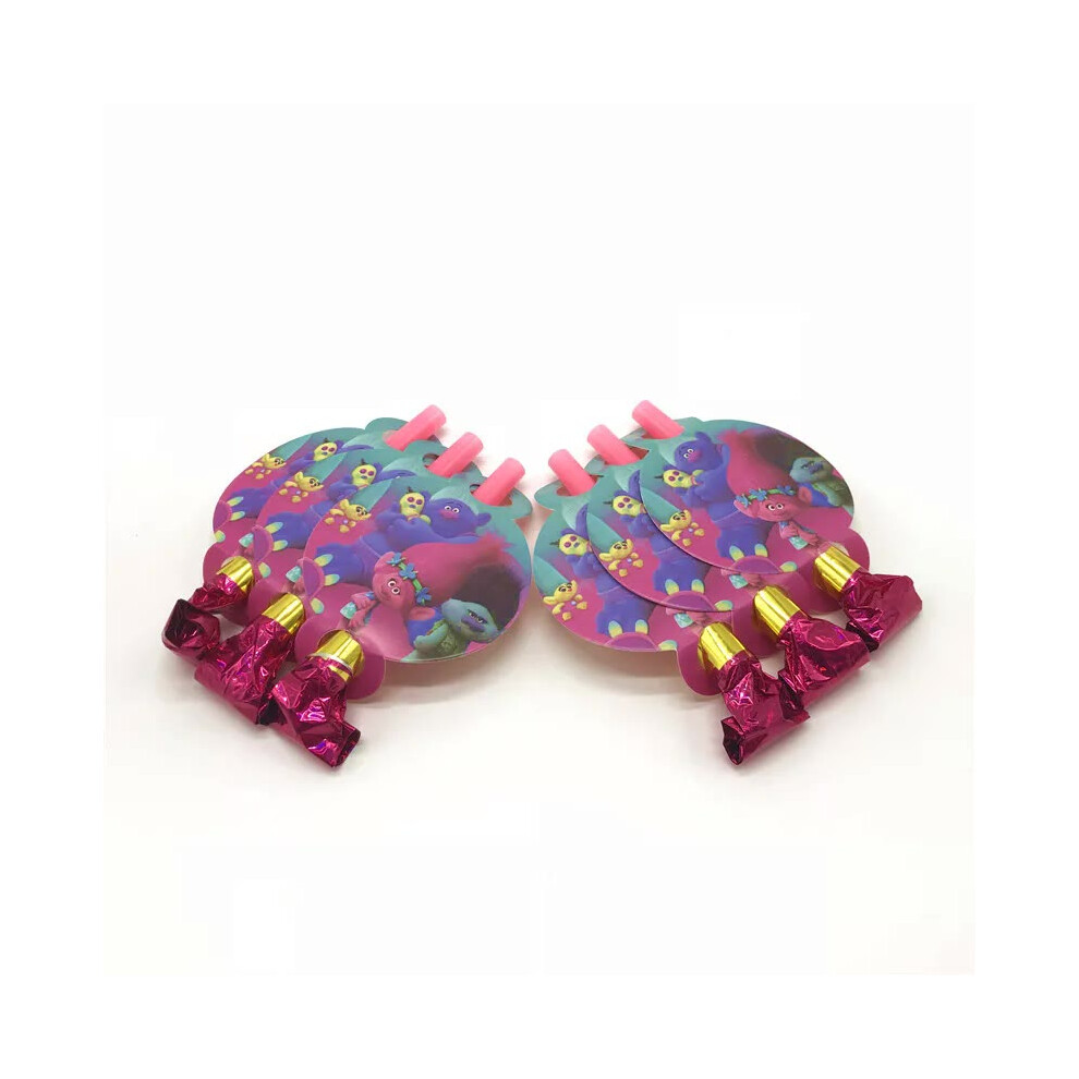 (Noise Maker-6pcs) New Trolls Birthday Party Decorations Troll Dolls Balloons Disposable Party Favors Tableware Tablecloth Plates Cups Baby Shower