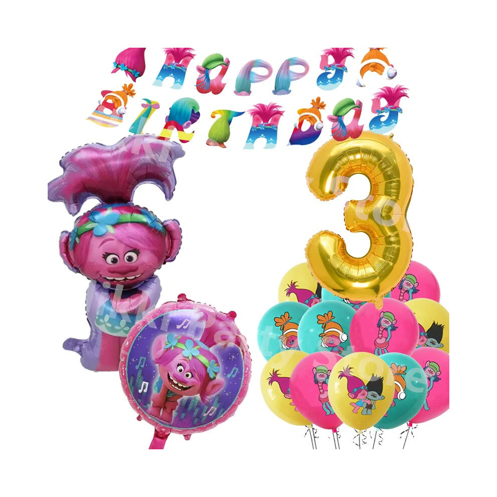 (Balloons-30pcs-3) New Trolls Birthday Party Decorations Troll Dolls Balloons Disposable Party Favors Tableware Tablecloth Plates Cups Baby Shower
