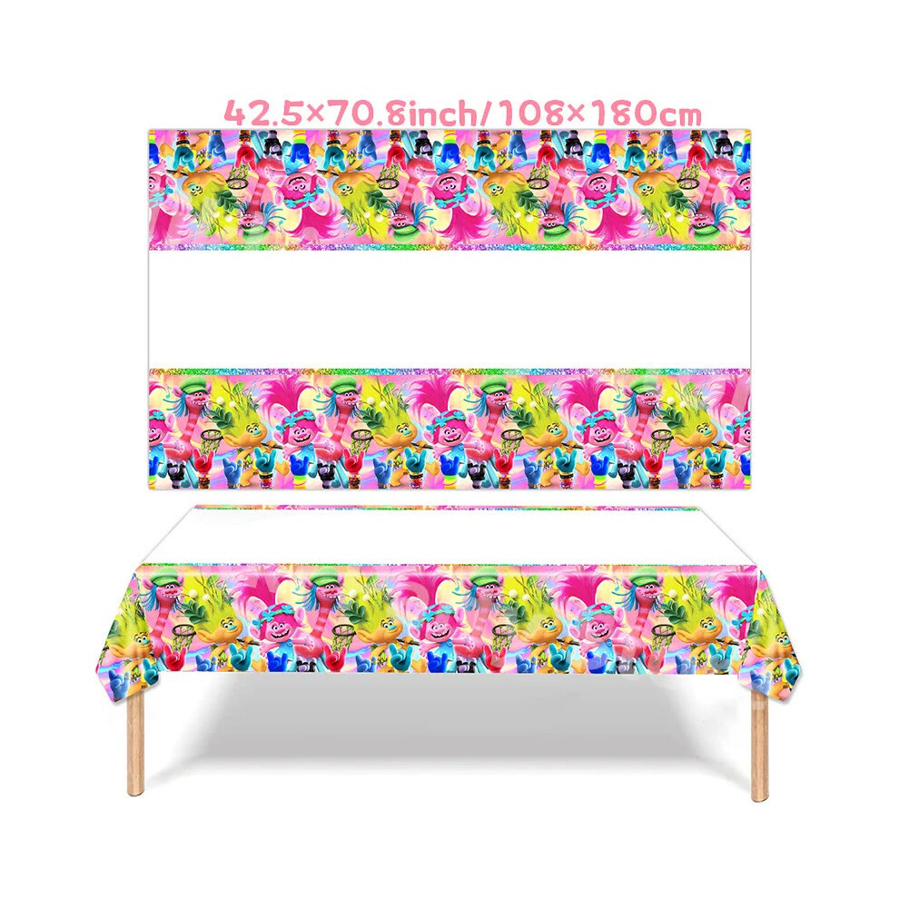 (Tablecloth-108x180cm) New Trolls Birthday Party Decorations Troll Dolls Balloons Disposable Party Favors Tableware Tablecloth Plates Cups Baby Shower