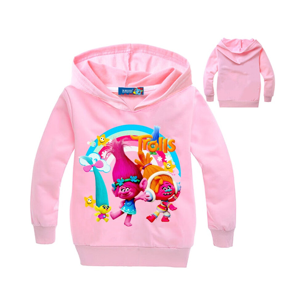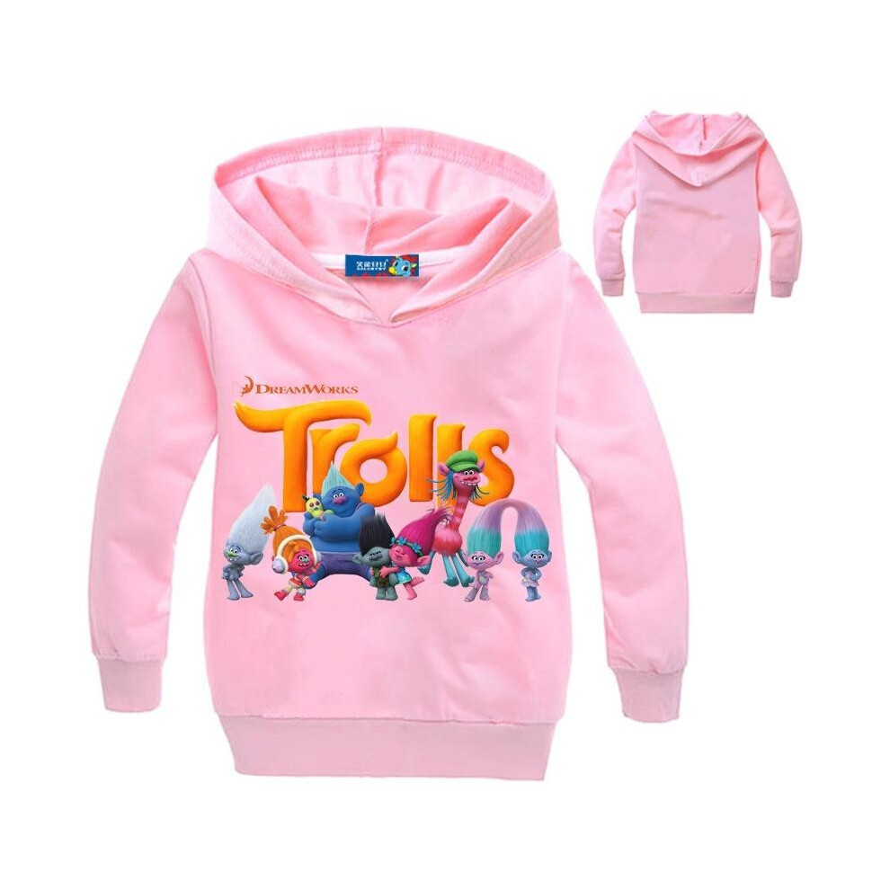 (PINK, #110 FOR 6-7 YEARS) Trolls Print Kids Girl Boys Hoodie Fall Spring Cotton Pullovers Coat Gift Jacket