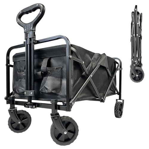 MoverX 70L Festival Trolley on Wheels, Folding Wagon, Portable Camping Cart, Collapsible Foldable Trolly for Beach Outdoor Garden Picnic Shopping Fishing, Wide Wheels, Adjustable Handle, Black