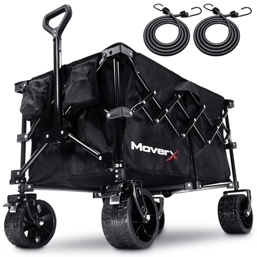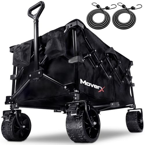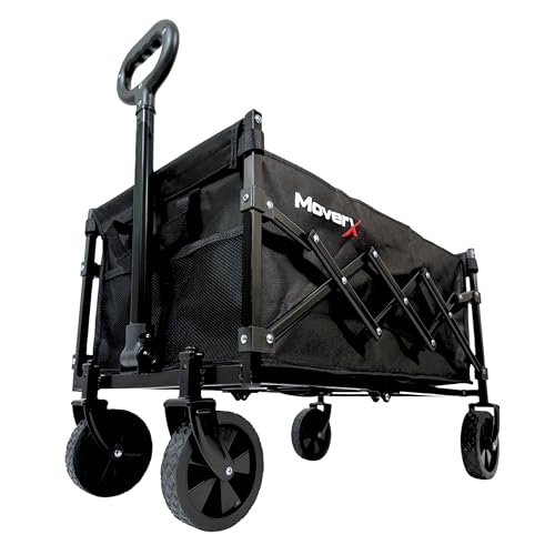 MoverX 120L Festival Trolley on Wheels, Folding Wagon, Portable Camping Cart, Collapsible Foldable Trolly for Beach Outdoor Garden Picnic Shopping Fishing, Wide Wheels, Adjustable Handle, Black