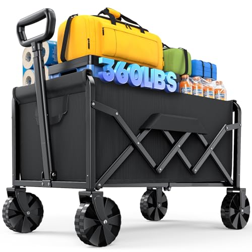 90L Festival Trolley, Folding wagon with 360 LBS Max Load & Expandable Storage, Sturdy Camping Trolly, Trolley on Wheels with 2 Cup Holders for