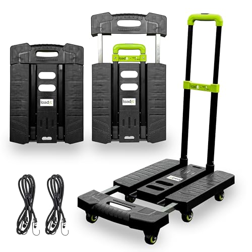 LoadIt 225kg Heavy Duty Folding Platform Trolley on Wheels - Foldable Flatbed Dolly Cart & Sack Truck Alternative - 6-Wheel Moving Trolly for Warehouse Delivery - Extendable Barrow