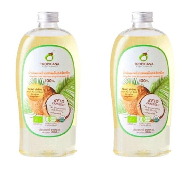 2 x 500ml Tropicana Cold Pressed Coconut Oil Thai Pure Virgin Hair Skin