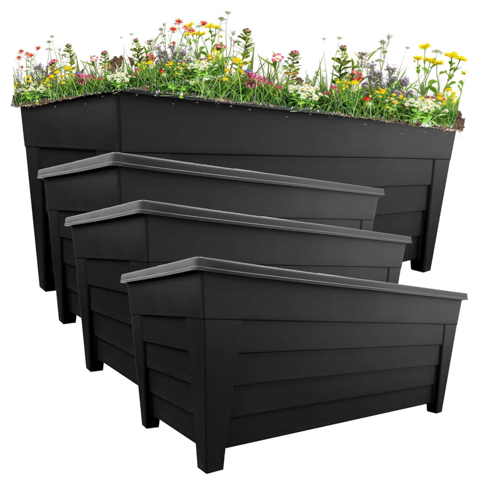4 Black Large Grosvenor Troughs Long Flower Planters For Home & Garden