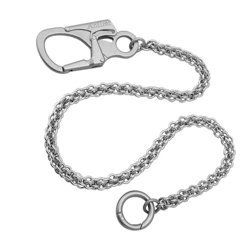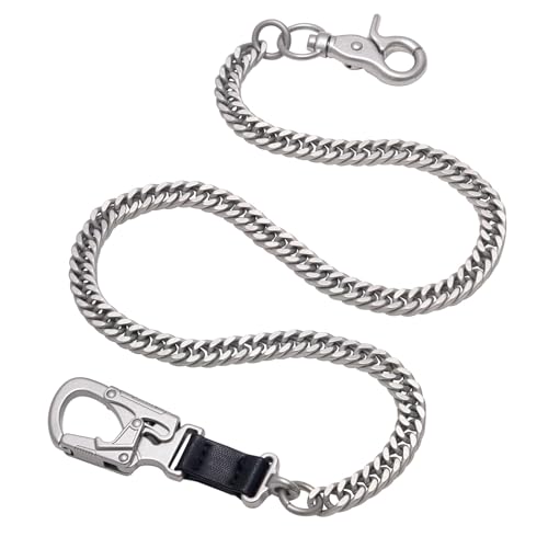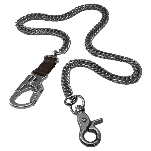 Ahiller Wallet Chain Key Chains for Men Women, Fancy Gunmetal Stainless Steel Belt Chain with Small Double Locking Mechanism Carabiner for Trouser Pant Pocket Purse Jean Handbag-YK