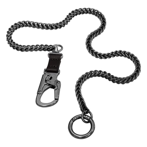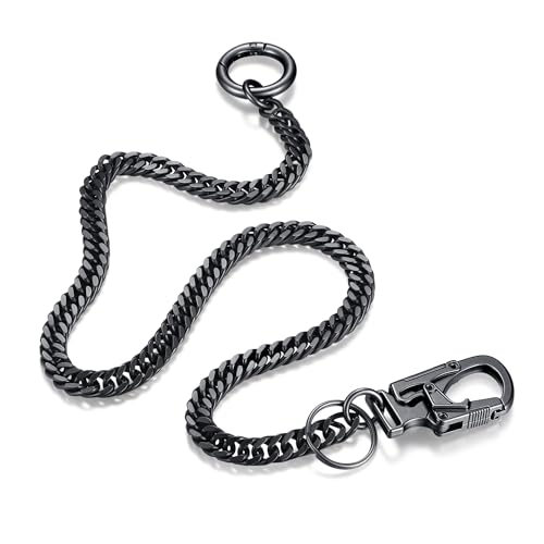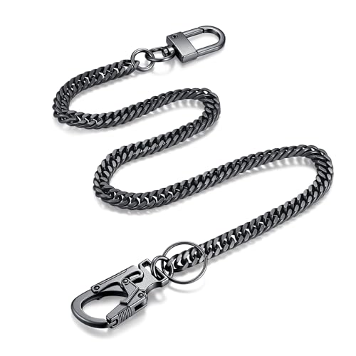Ahiller Wallet Chain Key Chains for Men Women, Fancy Gunmetal Stainless Steel Belt Chain with Small Double Locking Mechanism Carabiner for Trouser Pant Pocket Purse Jean Handbag-BK