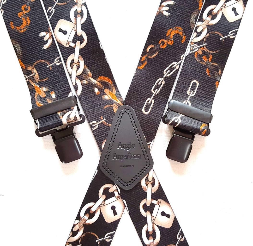 Mens Braces Heavy Duty 1.5" Rusty Chain Chains Motorbike Gothic Trouser Black