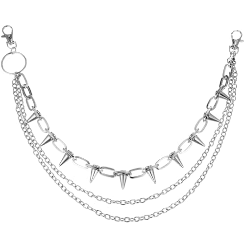 Yuanchu Punk Gothic Pants Chain for Men Women, Multi-Layer Trouser Chain Gothic Accessories With Lobster Clasps Waist Chain with Rivet Details Hip Hop Biker Rock Vintage Body Accessories Gifts(Silver)