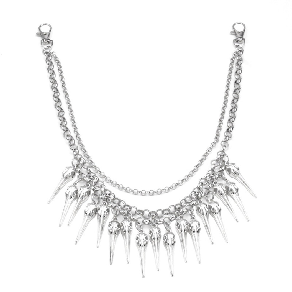1 Piece Trouser Chain Triple Cha Metal Cowboy Chain with Hooks Silver