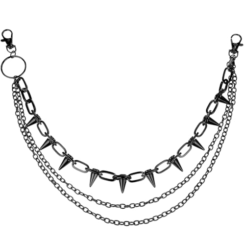 Yuanchu Punk Gothic Pants Chain for Men Women, Multi-Layer Trouser Chain Gothic Accessories With Lobster Clasps Waist Chain with Rivet Details Hip Hop Biker Rock Vintage Body Accessories Gifts(Black)
