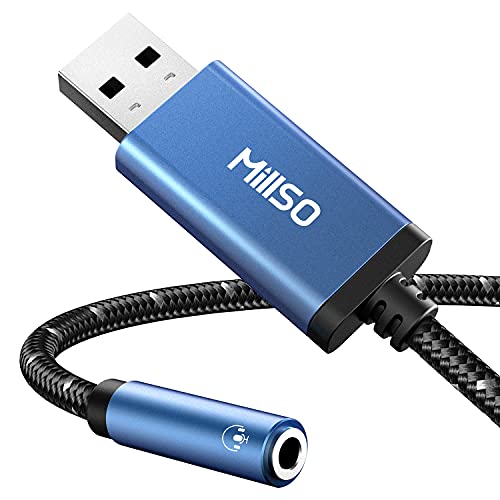 MillSO USB to 3.5mm Jack Audio Adapter, TRRS USB to AUX Audio Jack External Sound Card for Headphone, Speaker Mac, PC, Laptop, PS4, PS5 - Sapphire Blue + Braided + Smart Chip
