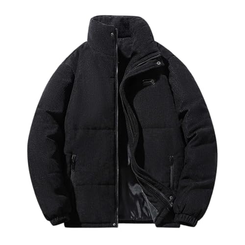 Mens Jacket Winter Coat - Corduroy Full Zip Up Mock Neck Long Lined Fleece Trucker Shackets Coat With Pockets (Black, L)