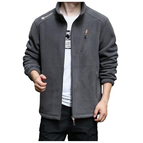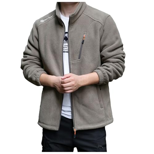Mens Fleece Jacket Full Zip, Cotton Sherpa Fleece Lining Trucker Coat Winter Thermal Lapel Collar Jacket Lightweight Fleece Mens Mens Coats and Jackets Mens Windbreaker Jacket Outwear Running Hiking