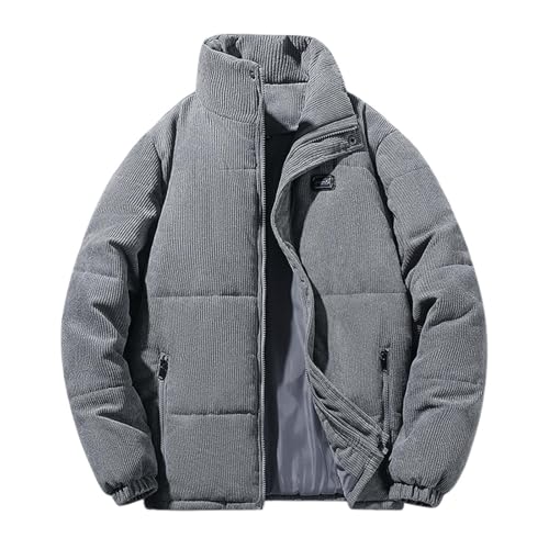 Winter Jacket Mens Xl - Corduroy Full Zip Up Mock Neck Long Lined Fleece Trucker Shackets Coat With Pockets (Grey, M)