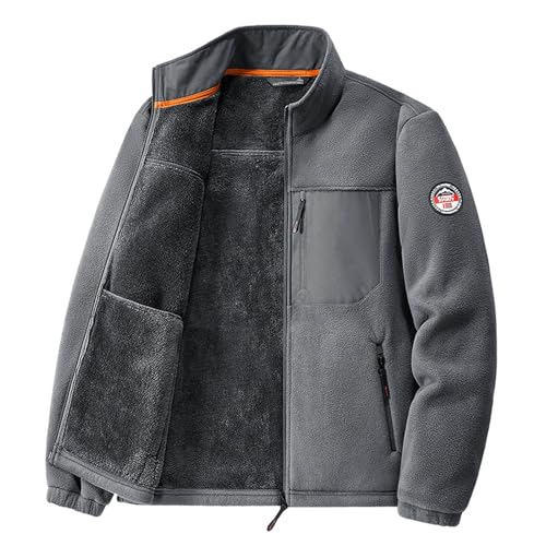 Full Zip Fleece Jacket Mens, Cotton Sherpa Fleece Lining Trucker Coat Winter Thermal Lapel Collar Jacket Teddy Jacket Jackets for Men Uk Winter Mens Lightweight Jacket Outdoor Hiking