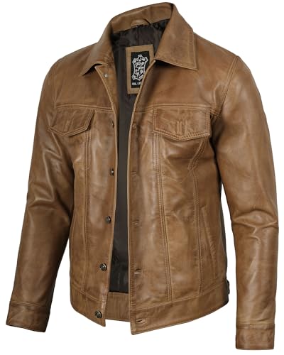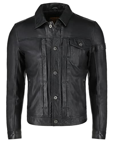SHOP OF JACKETS LIMITED Mens Trucker Real Soft Leather Jacket (XL, Black)