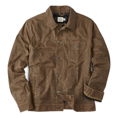 Huckberry Flint and Tinder Men's Flannel-Lined Waxed Trucker Jacket, Water & Weather Resistant Mens Jacket, Havana, S