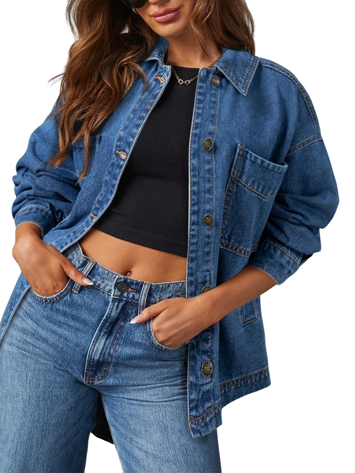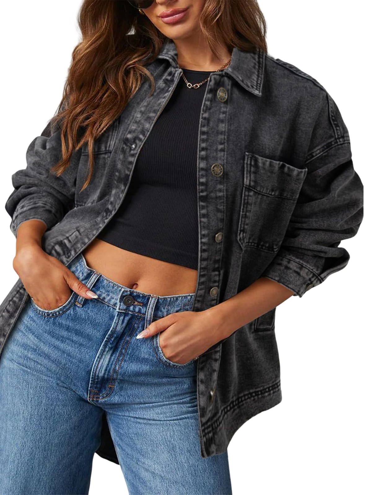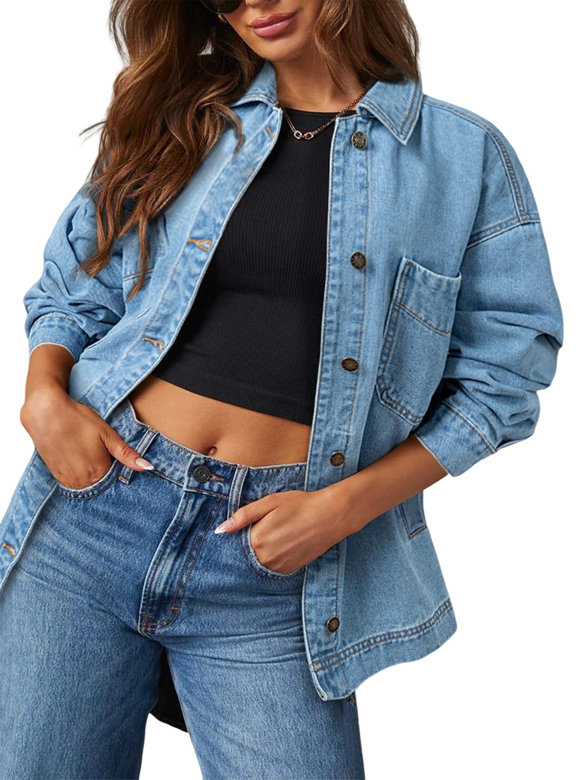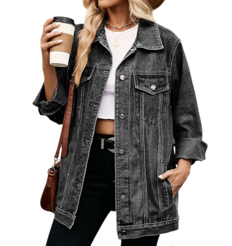 Jean Jackets for Women Trendy Button Down Denim Trucker Jackets Long4561