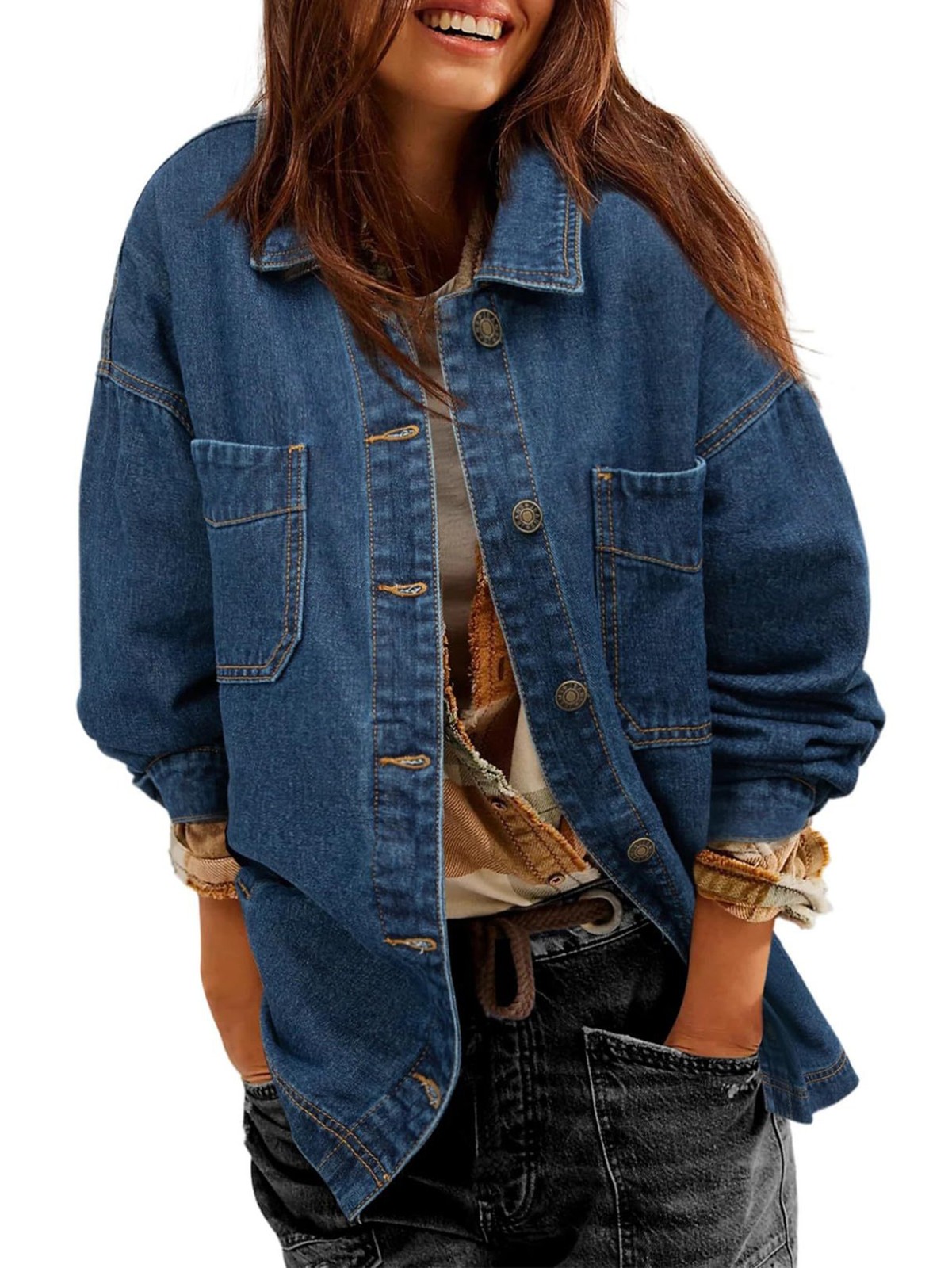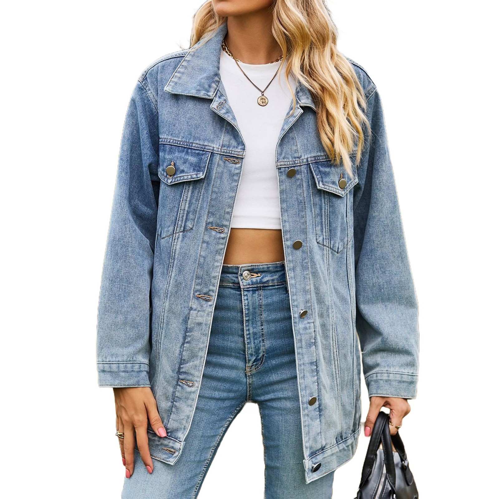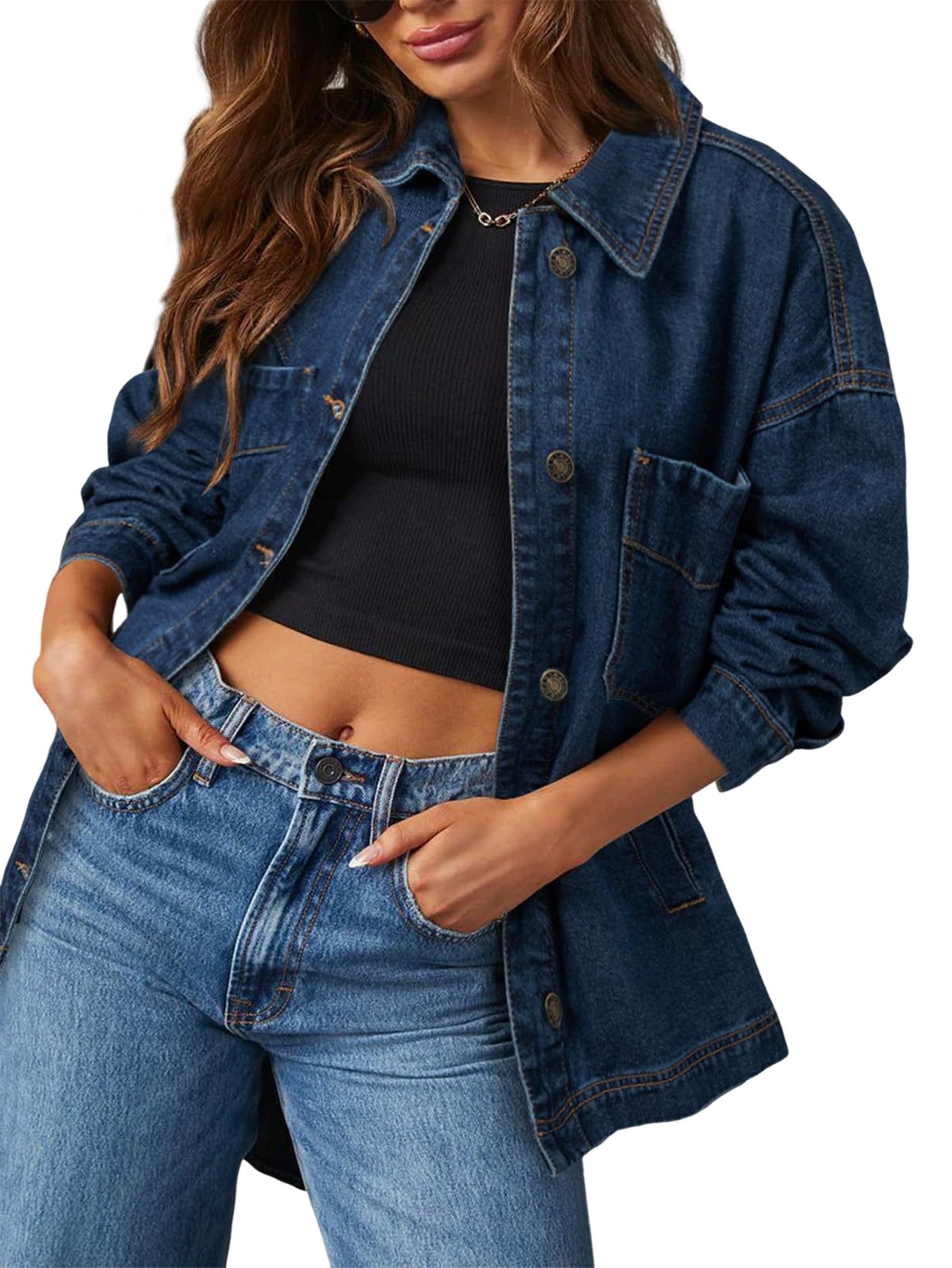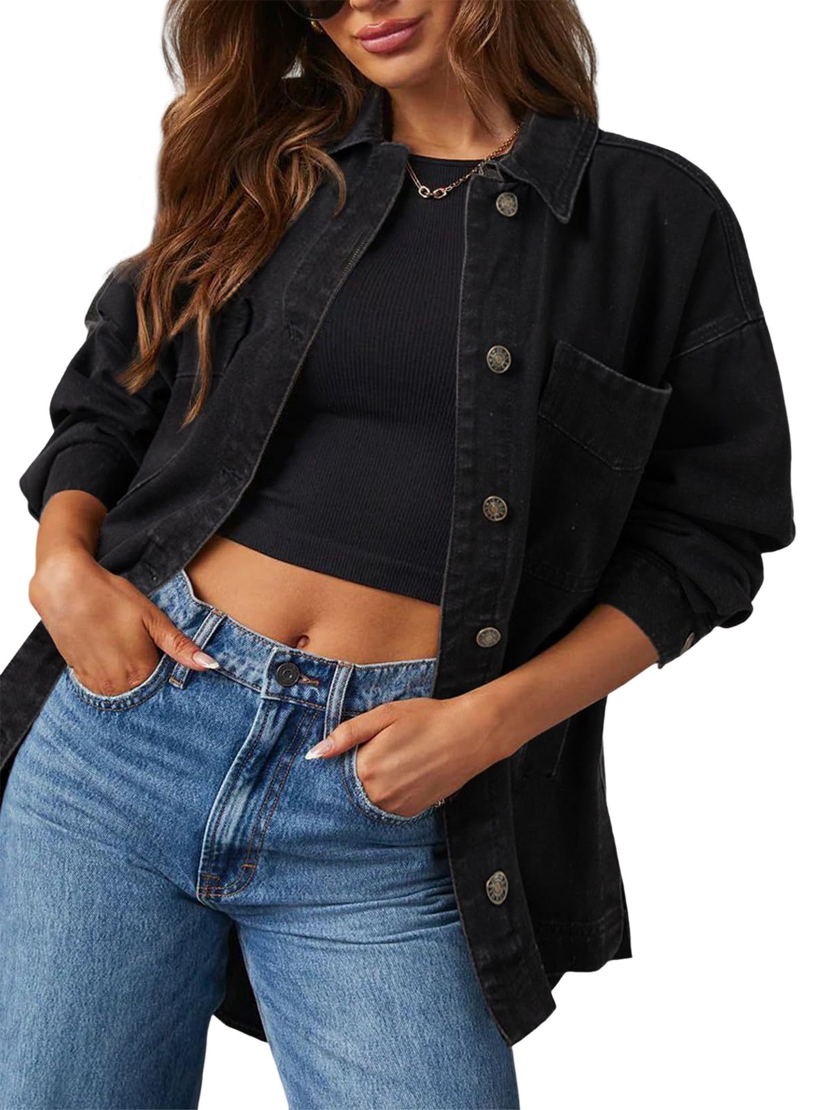 Jean Jackets for Women Trendy Button Down Denim Trucker Jackets Long4561
