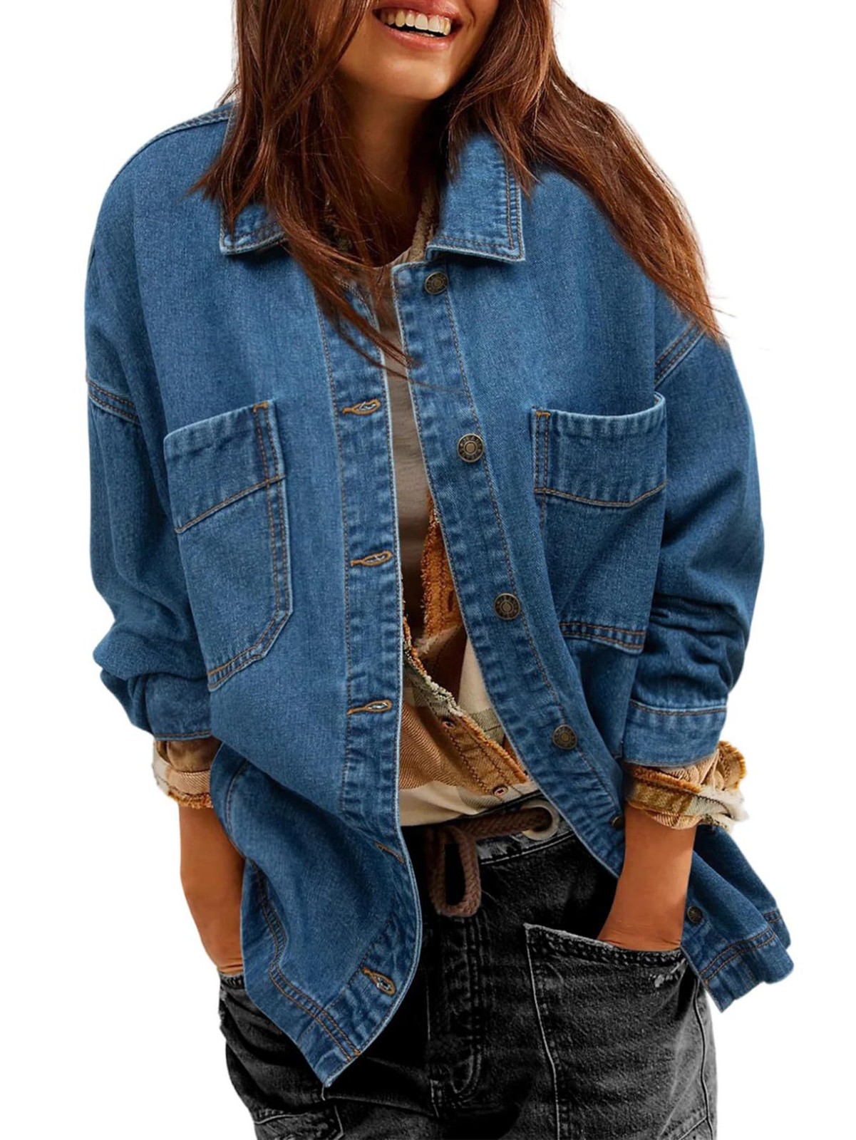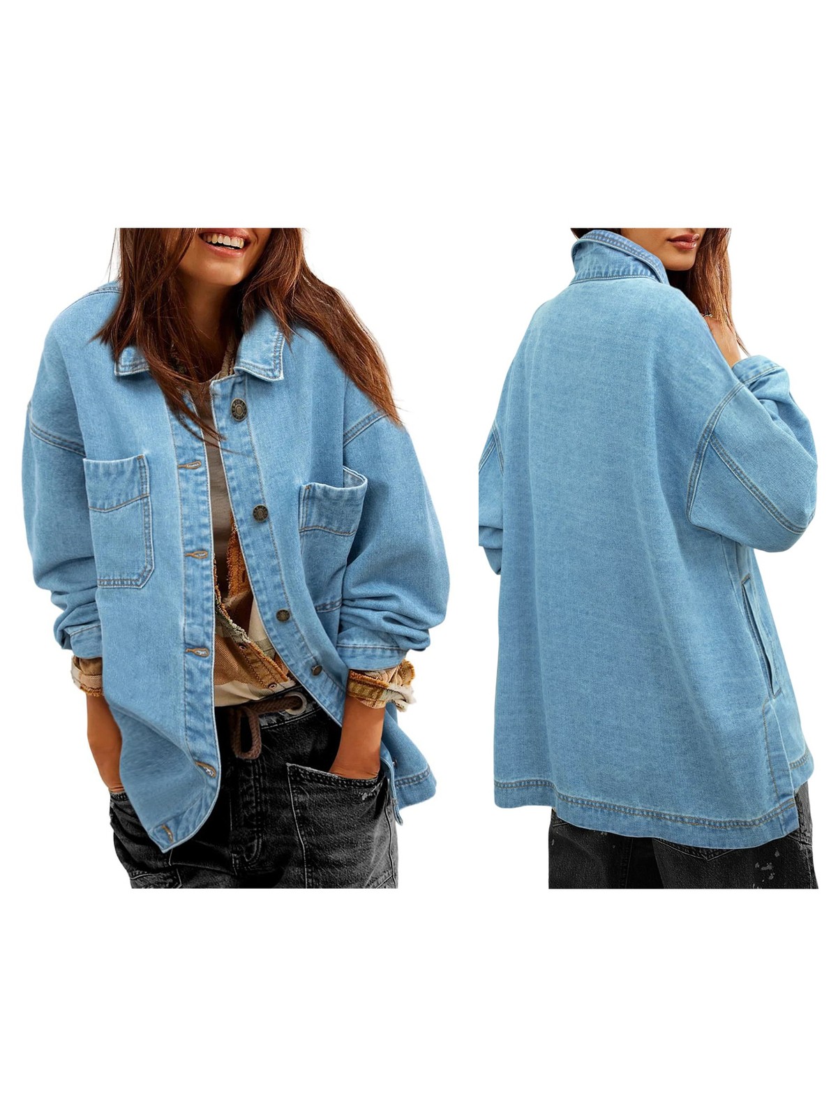 Jean for Women Distressed Long Sleeve Oversized Denim Trucker Jackets Coat3072