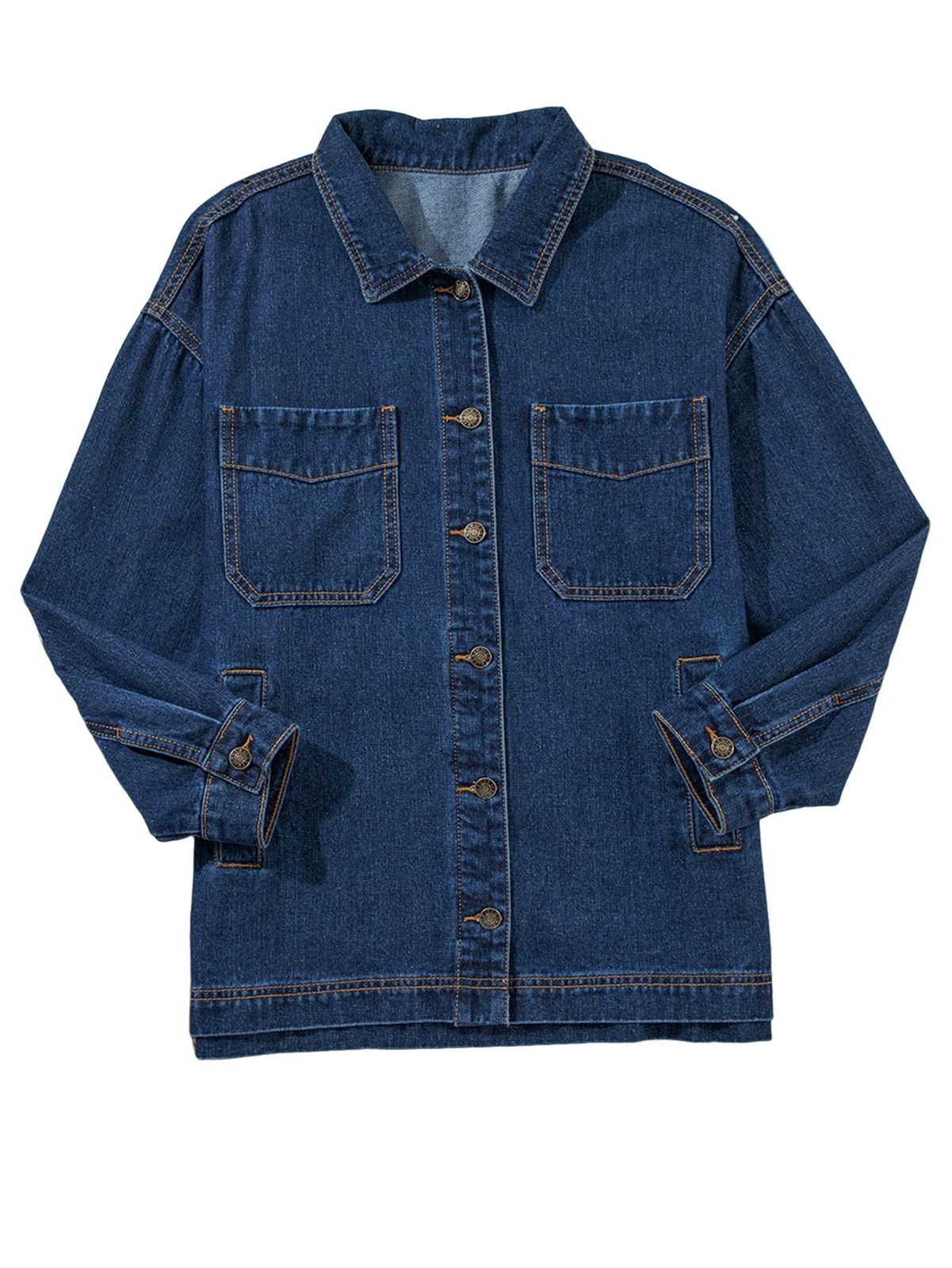 Jean for Women Distressed Long Sleeve Oversized Denim Trucker Jackets Coat4335