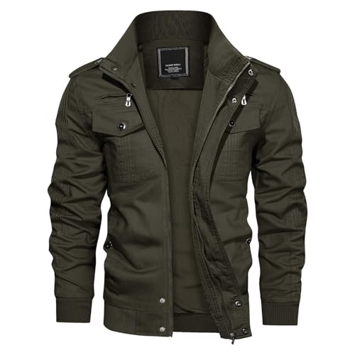 KEFITEVD Bomber Jackets Men Casual Cargo Military Motorbike Jacket Trucker Full Zipper Coat Cotton, XXL, Army Green