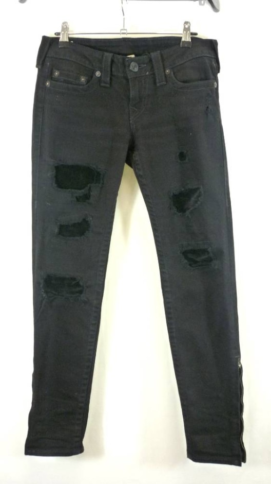 True Religion Ripped, Slim Black Jeans Black Size: 28