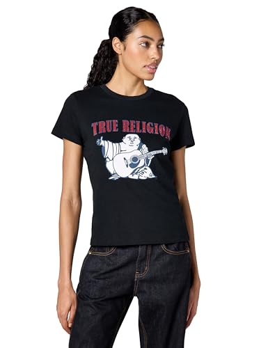 True Religion Women's Buddha Slim Vneck Tee, Jet Black, XL