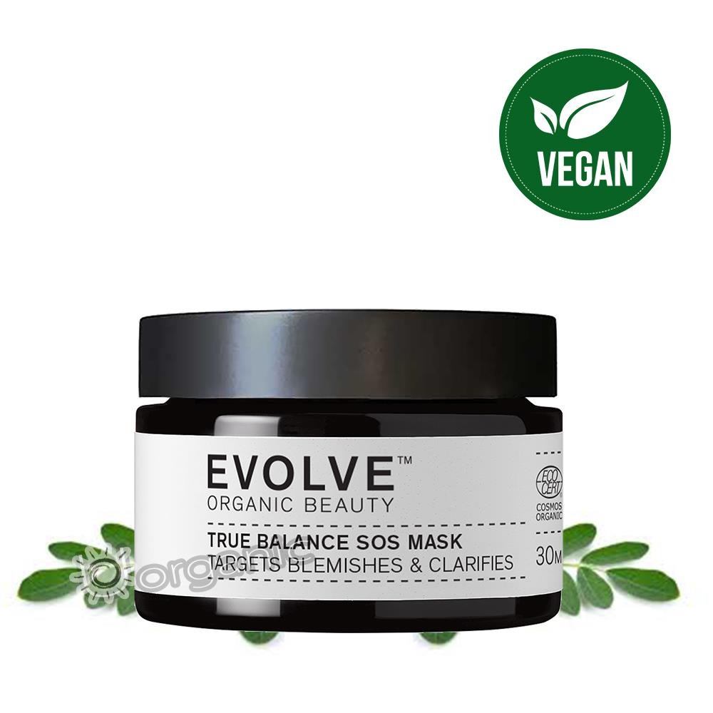 Evolve Beauty Organic Natural True Balance SOS Mask 30ml Combination, Oily Skin