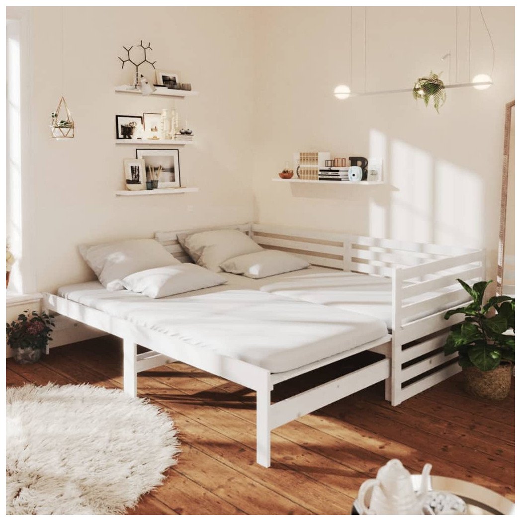 Daybed pull-out solid pinewood white 2x90x200cm sofa guest bed frame trundle UK