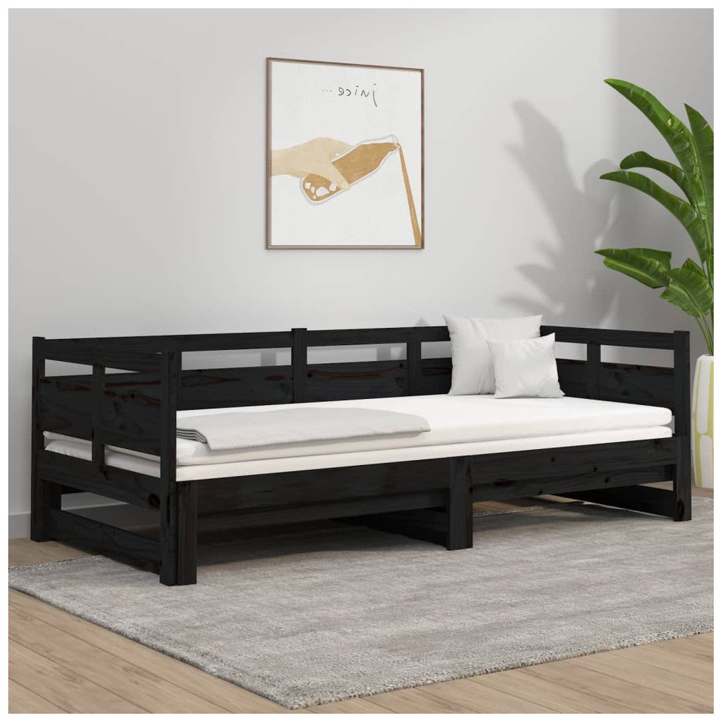 Day Bed Solid Pinewood Pull-Out Trundle Black 90x190cm Space-Saving GuestBedUK
