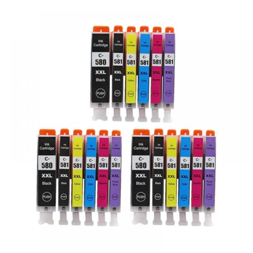 HJXcTRH Compatible Ink Cartridge PGI-580 CLI-581 580XXL 581XXL Compatible With TS6150 TS6151 TS6250 TS6251 TS6350 TS6351 TS8150 TR7550 In Five Six Colors(3 SET 18PC)