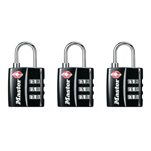 Master Lock Black TSA-Approved Luggage Lock with Wide Lock Body and Thin, Durable Steel Shackle, Zipper Lock for Backpacks, Luggage, 3 pk, 4680BLKEC3