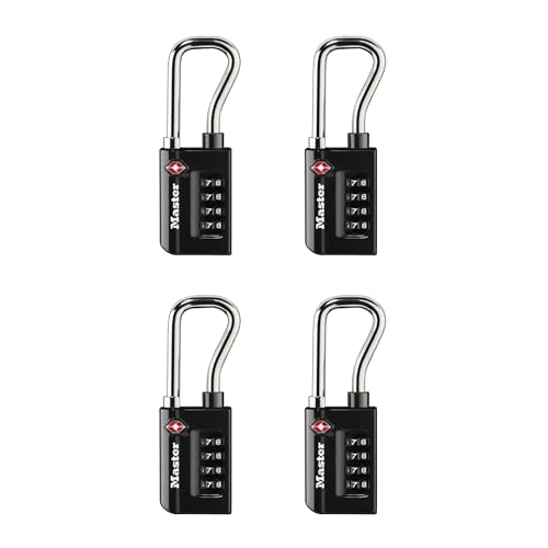 Master Lock Padlock, Set Your Own Combination TSA Accepted Luggage Lock, 1-5/16 in. Wide, Black, 4 pk, 4696EC4