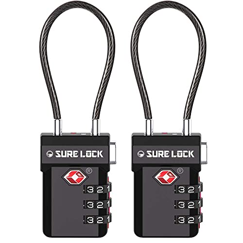 SURE LOCK TSA Compatible Travel Luggage Locks, Inspection Indicator, Easy Read Dials (Extra Long Cable)