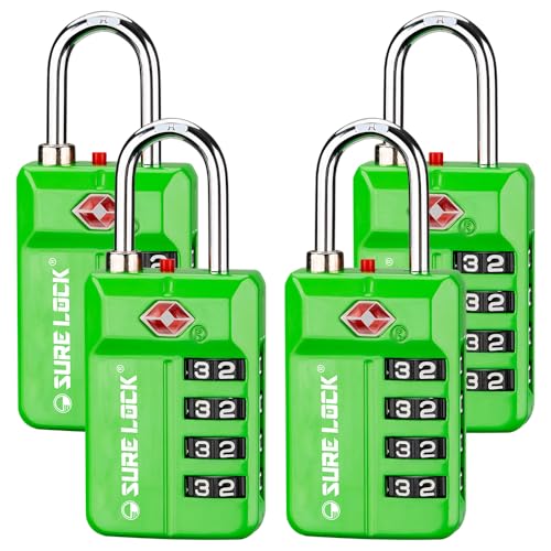 SURE LOCK TSA Approved Travel Luggage Locks, Open Alert Combination Lock for School Office & Gym Locker,Toolbox, Pelican Case,Easy Read Dials- 1, 2 & 4 Pack, Green 4 Pack, L, Compact