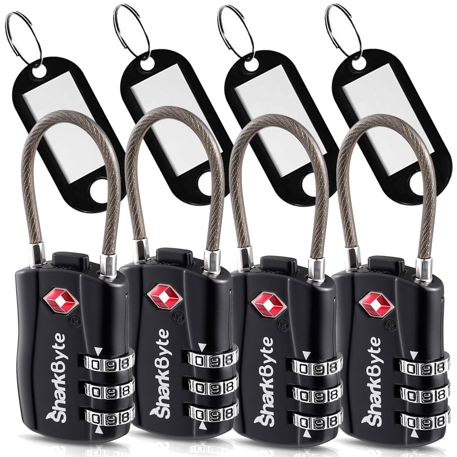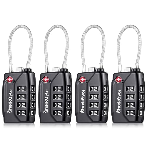 SharkByte TSA Approved Suitcase Locks - 4-Dial Security Travel Combination Padlock, Flexible Cable Wire Travel Lock for Suitcases, Luggage locks, Case Travel Bag Gym Locker Code Small PadLock (Pack 4)
