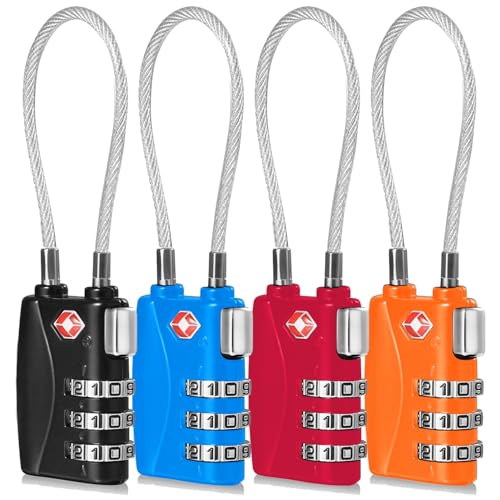 CFMOUR TSA Locks - 1, 2, 3, 4, 5, 6 Pack 3-Dial Travel Cable Combination Security Padlock for Suitcase Luggage Case Bag Code Lock - Black&Blue&Red&Orange (Pack of 4)
