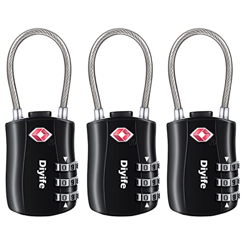 Diyife TSA Luggage Locks, [Newest Version][3 Packs] 3-Digit Security Padlock, Combination Padlocks, Code Lock for Travel Suitcases Luggage Bag Case etc.(Black)