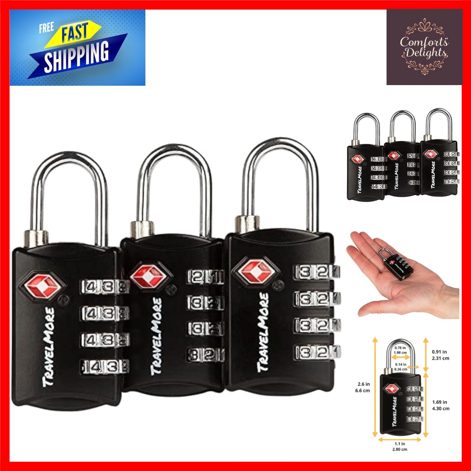 3-Pack TSA Luggage Locks with 4-Digit Combination - Ultimate Travel Security