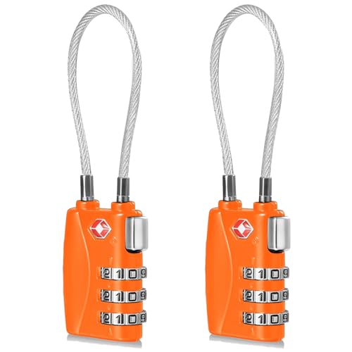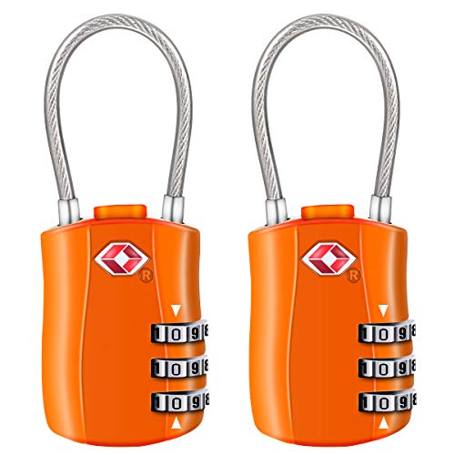 CFMOUR TSA Locks - 1, 2, 3, 4, 5, 6 Pack 3-Dial Travel Cable Combination Security Padlock for Suitcase Luggage Case Bag Code Lock - Orange (Pack of 2)