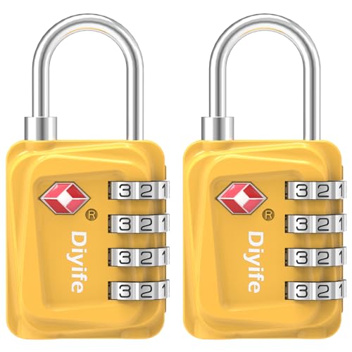 TSA Luggage Locks, [Updated Version] [2 Packs] Diyife 4-Digit Security Padlock, Resettable Zinc Alloy Combination Padlocks, Small Code Lock for Travel Suitcases Luggage Bag Case (Yellow)